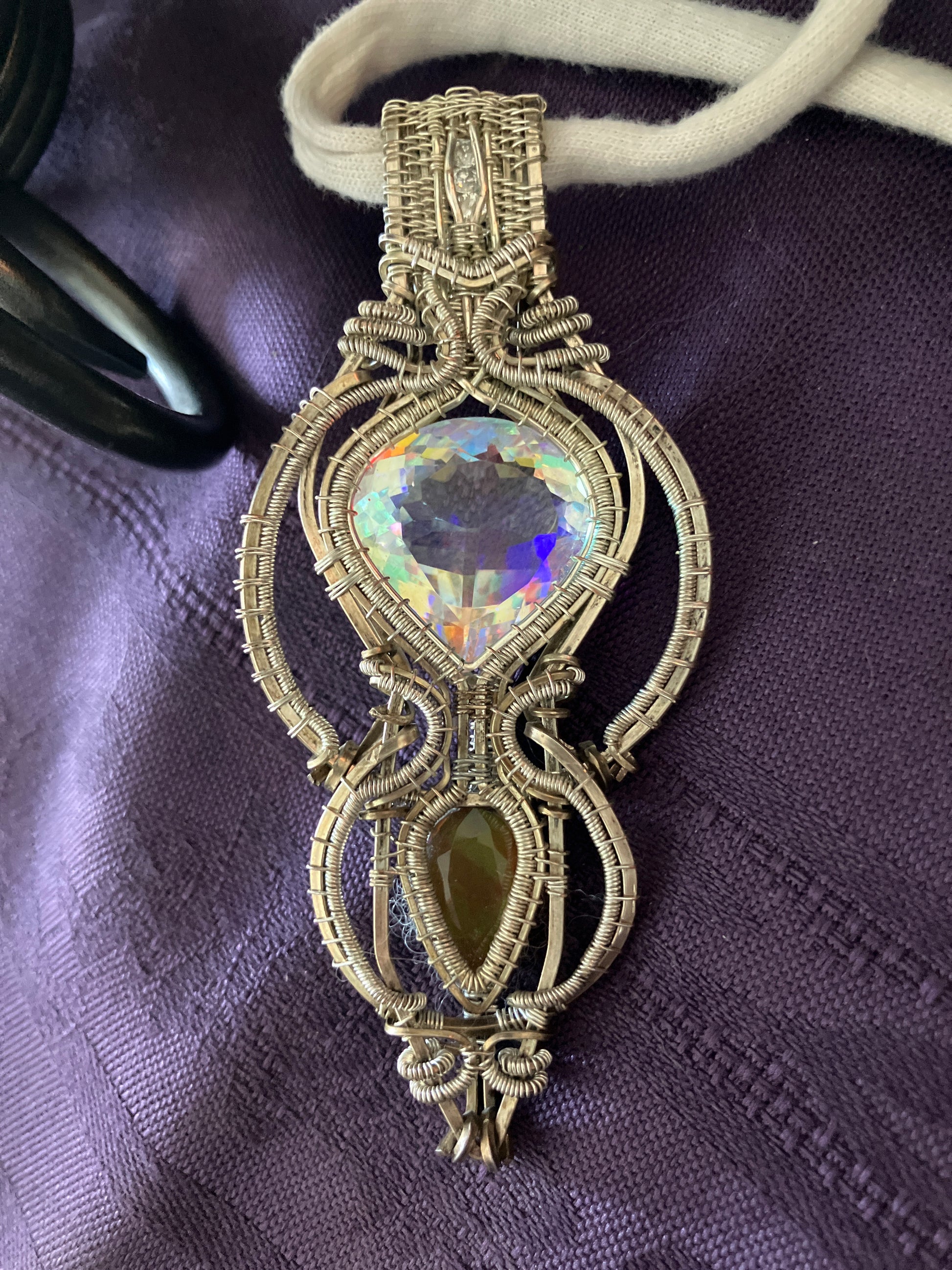 Mystic Quartz, Opal & Moissanite Wire Wrapped Amulet in 925 Sterling Silver